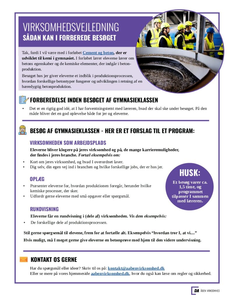 Herunder finder du undervisningsmateriale, som du kan bruge i det omfang, du har lyst – og en guide til, hvordan du griber virksomhedsbesøget an.