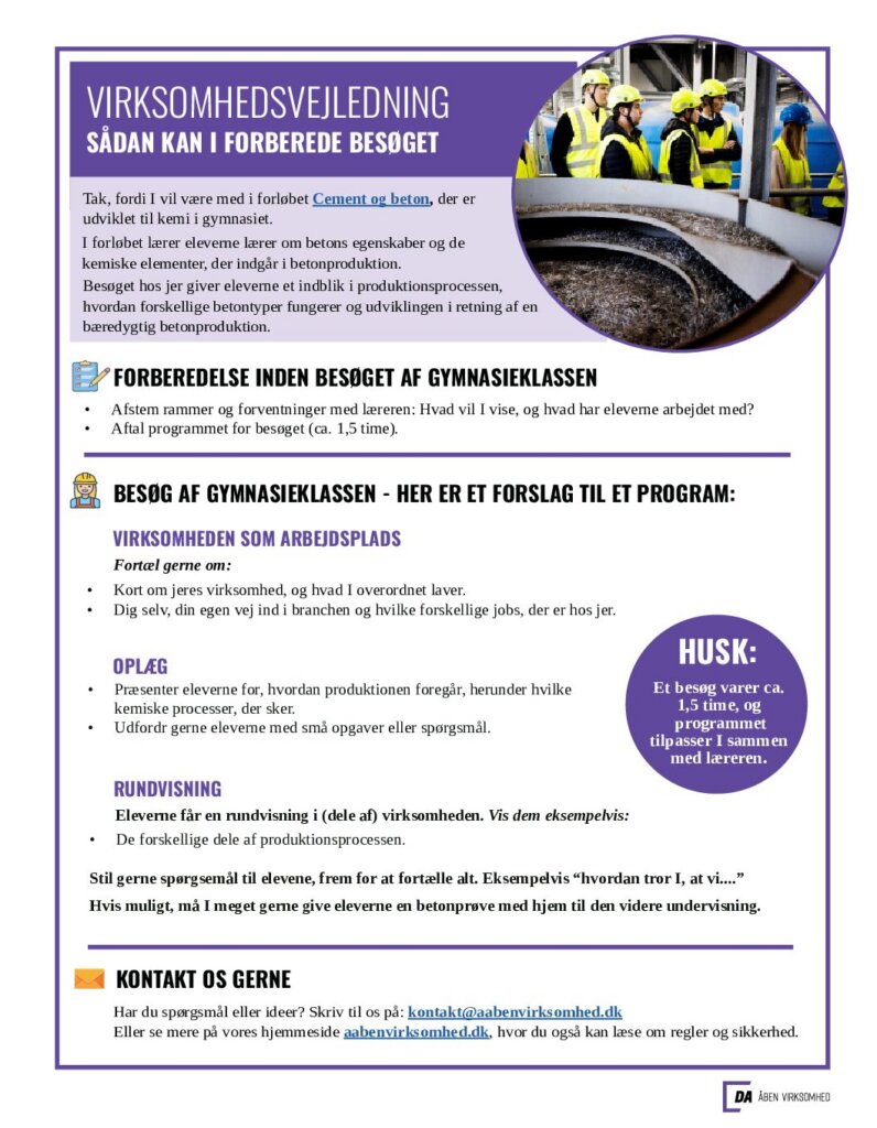Herunder finder du undervisningsmateriale, som du kan bruge i det omfang, du har lyst – og en guide til, hvordan du griber virksomhedsbesøget an.