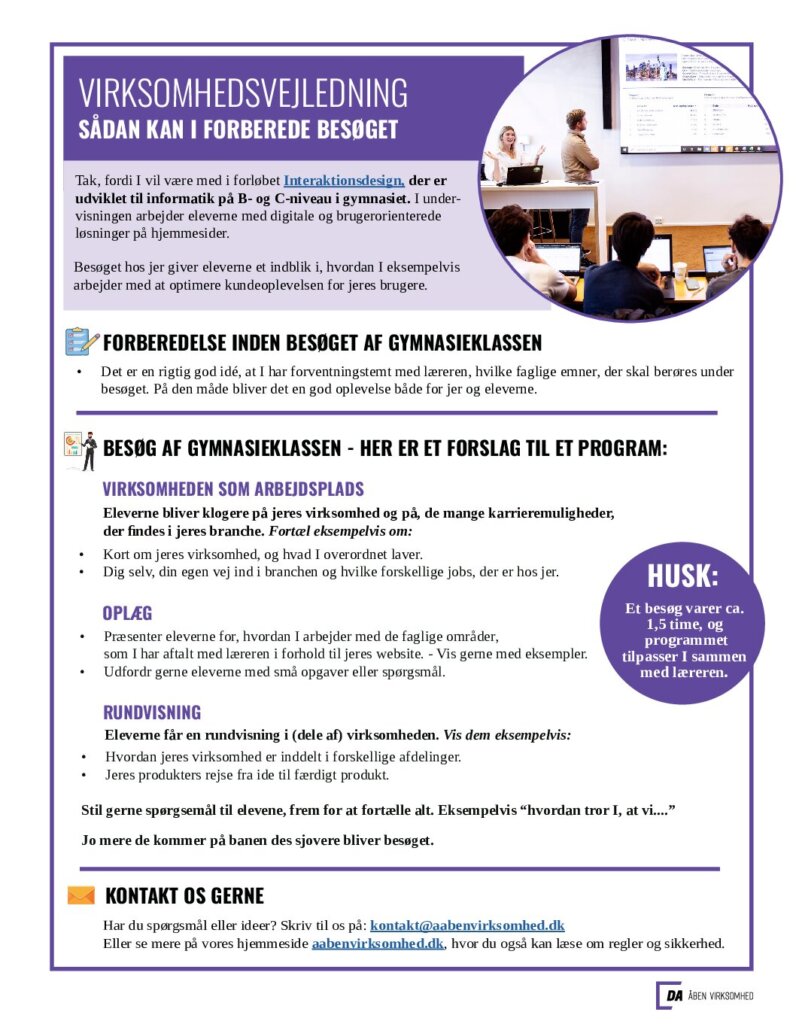 Herunder finder du en lærervejledning til, hvordan du kan forberede dig forud for besøget.