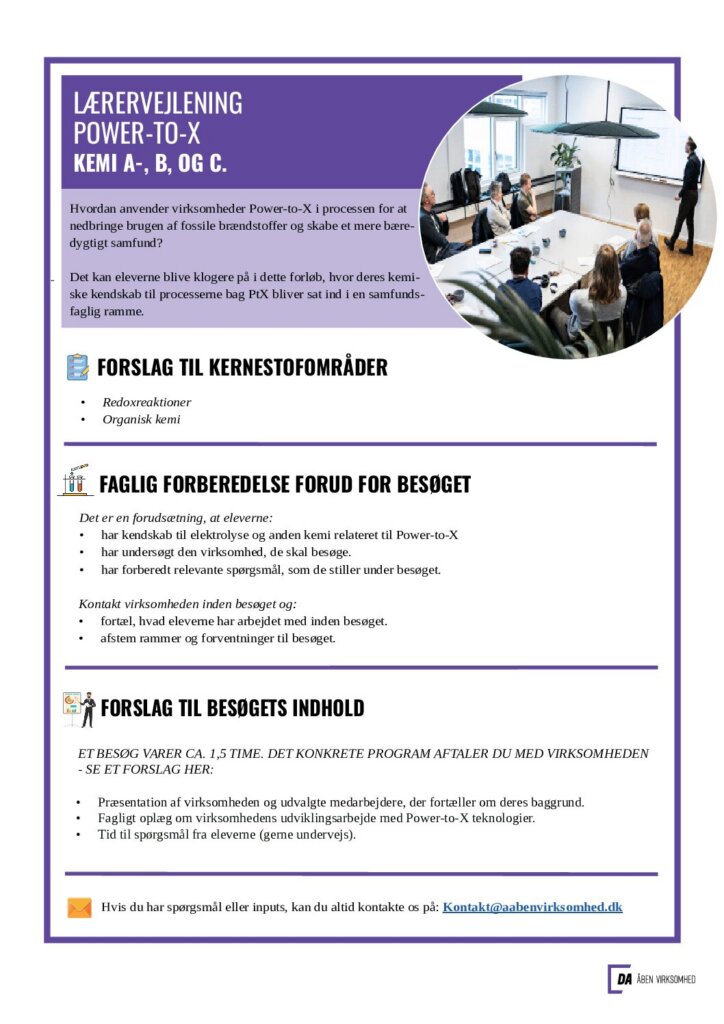 Hvis du er interesseret i et besøg hos Energinet, kan du via knappen “Book dit besøg her” skrive til gymnasiekonsulent Charlotte Waltz hos Åben Virksomhed, og så hjælper hun dig med at sætte besøget i stand. Husk endelig at fortælle, hvad eleverne har arbejdet med forud for besøget. På den måde gør du det nemt for virksomheden at tale relevant ind i det, I har arbejdet med hjemme i klassen.
