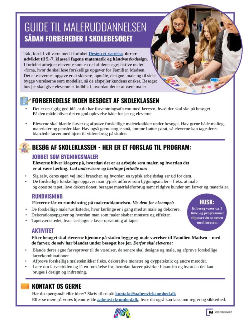 OBS: Max 20 elever pr. besøg, ellers skal klassen besøge malerværkstedet ad to omgange.