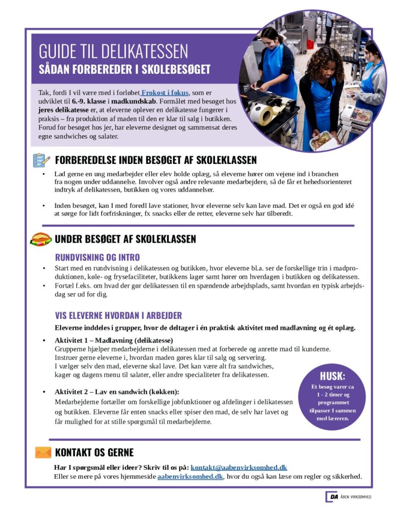 Her på siden kan du kontakte Føtex og aftale dato for, hvornår du og din klasse kan komme på besøg. Du finder også undervisningsmateriale, som du kan bruge i det omfang, du har lyst – og en guide til, hvordan du griber virksomhedsbesøget an.